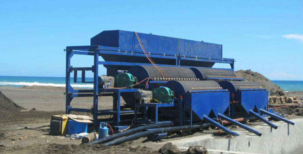 極低品位戈壁灘沙鐵礦磁選生產(chǎn)線是我公司自行研制的具有自主知識(shí)產(chǎn)權(quán)的從極低品位戈壁灘沙漠中提取鐵精粉的新產(chǎn)品,擁有發(fā)明專利兩項(xiàng),實(shí)用新型專利兩項(xiàng),該生產(chǎn)線采用先篩分后干選工藝,拋去大量尾礦,再經(jīng)過(guò)預(yù)選大大提高原礦品位,使球磨機(jī)“吃粗糧”變?yōu)椤俺跃Z”,大大降低了運(yùn)行成本,保證精選后最終鐵精粉品位達(dá)到64%以上,而且設(shè)備投資少,節(jié)能效果顯著。